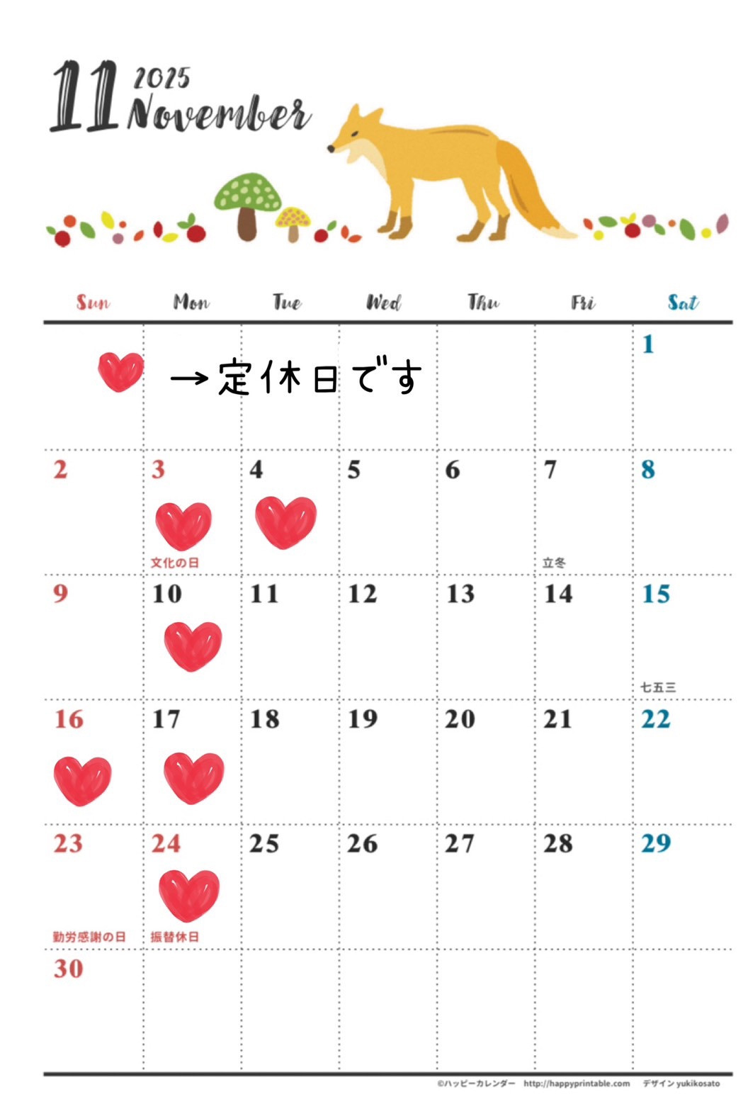 11月営業日のお知らせ